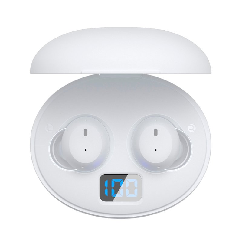 Auricolari stereo Bluetooth per ascoltare musica e telefonare grazie alla connessione Bluetooth. Design innovativo con display LED che mostra il livello della batteria e lo stato di carica, integrato nella custodia di ricarica (power bank).